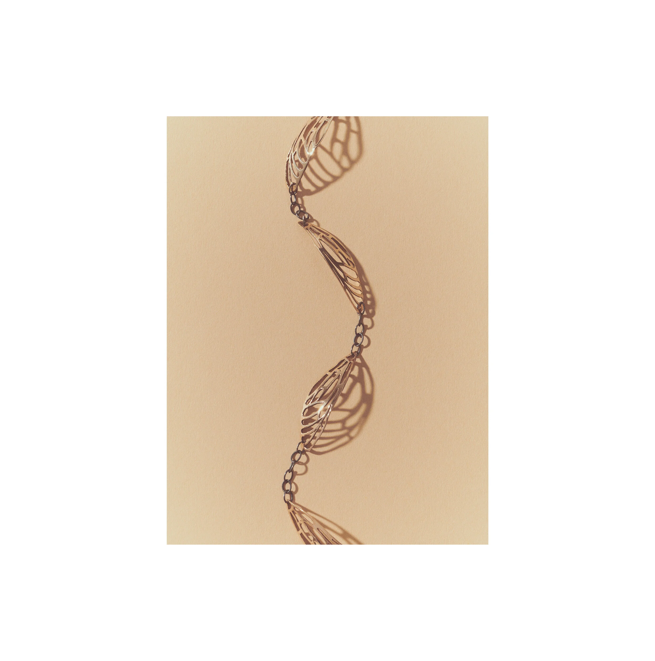 ‘Scarab - Silver Wings’ silver bracelet with an oxidized silver chain by OrriFinn Jewels.
